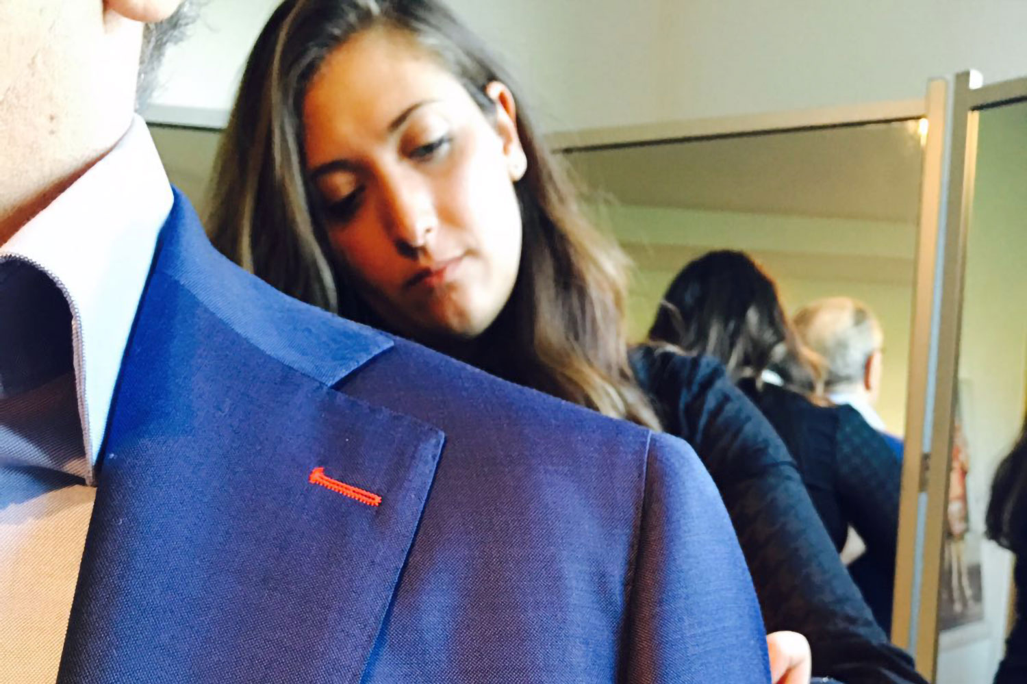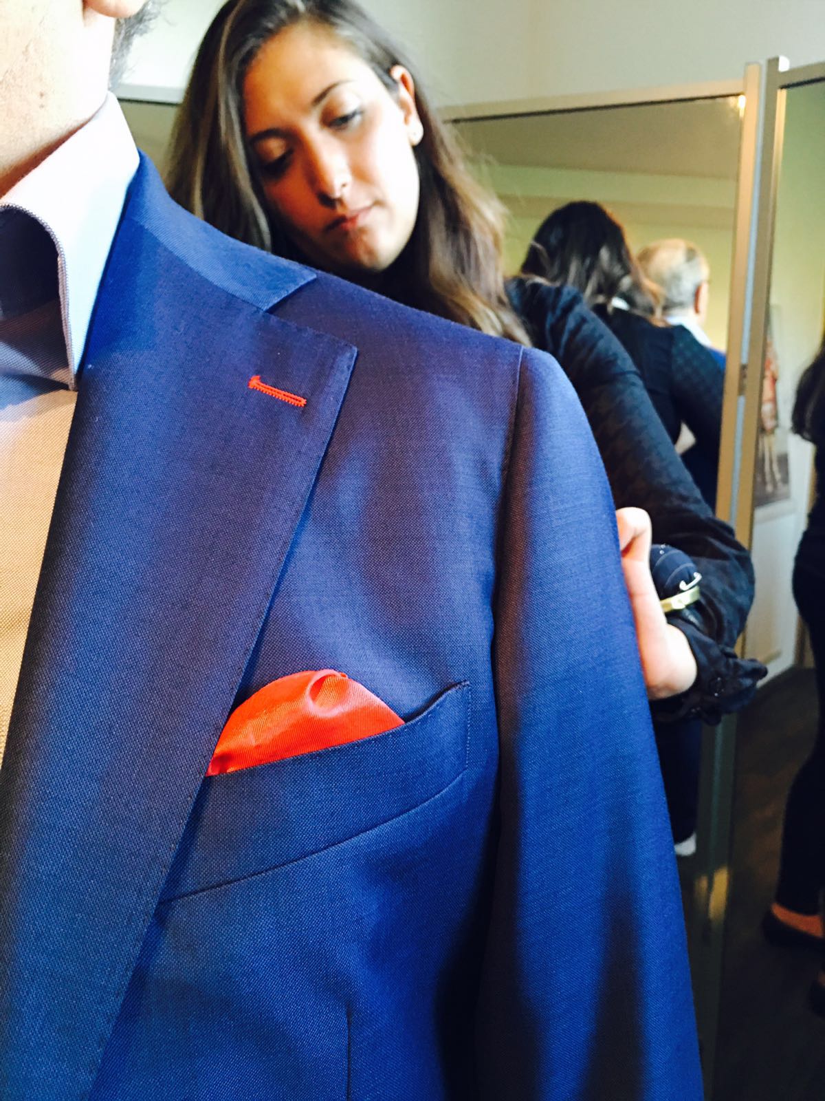 Das Atelier selbst ist ein wichtiger Teil dieses Konzepts. Klassische Möbelstücke, sorgfältig kuratiert, geben dem Raum eine besondere Tiefe und erinnern an die Tradition alter Maßsalons. Hier nimmt man sich Zeit: für Gespräche, Stoffauswahl und die Entwicklung einer Formsprache, die zu jedem Menschen individuell passt. Gefertigt wird in europäischen Manufakturen, während Anpassungen und Beratung bewusst vor Ort stattfinden – eine Verbindung aus internationaler Qualität und lokalem Handwerk.